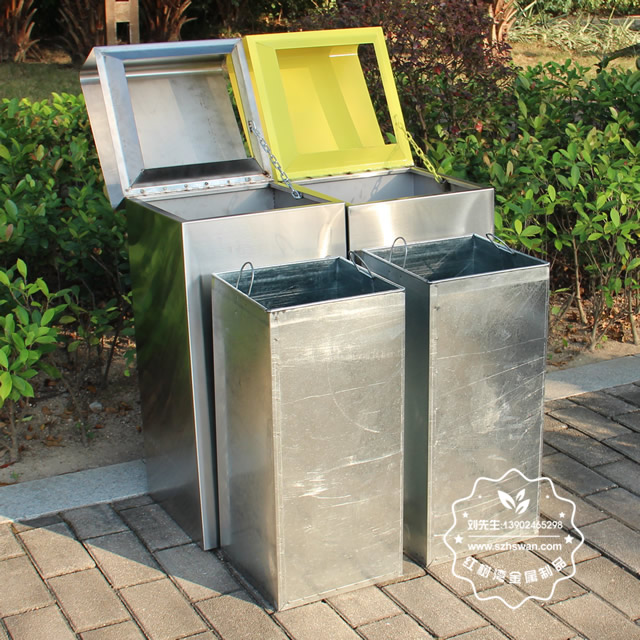 產品材質:不銹鋼垃圾桶采用201#,202#,304#優質不銹鋼材料模壓成型,堅固耐用;內外表面光潔,減少垃圾殘留,易于清潔;配置鍍鋅板內桶,便于垃圾清倒;