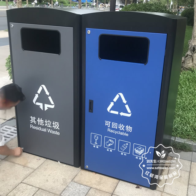 產品材質:深圳市政道路不銹鋼分類垃圾箱體套桶桶罩采用201#,202#,304#優質不銹鋼材料模壓成型,堅固耐用;內外表面光潔,減少垃圾殘留,易于清潔;配置鍍鋅板內桶,便于垃圾清倒;