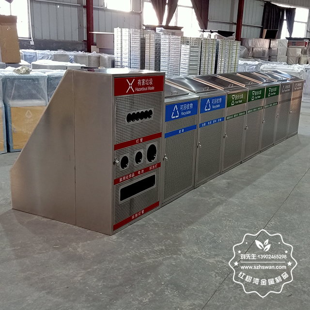 產品材質:小區大容量不銹鋼分類垃圾桶采用201#,202#,304#優質不銹鋼材料模壓成型,堅固耐用;內外表面光潔,減少垃圾殘留,易于清潔;配置鍍鋅板內桶,便于垃圾清倒;