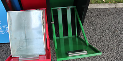 產品材質:戶外噴塑四分類鋼制垃圾箱表面經過除油、噴砂防銹處理后,再進行酸洗磷化處理;表面清理后整體進行靜電噴涂或烤漆處理,靜電噴涂是經過流水線高溫固化爐固化后再出爐冷卻,漆面色澤耐久,防腐防銹;
