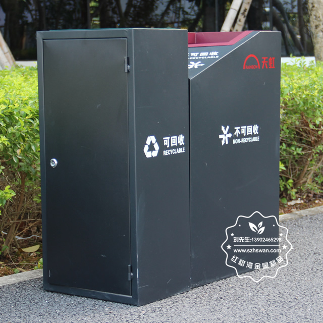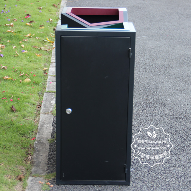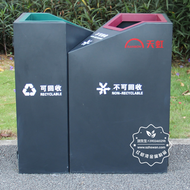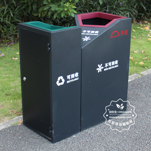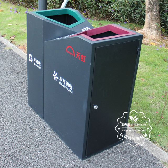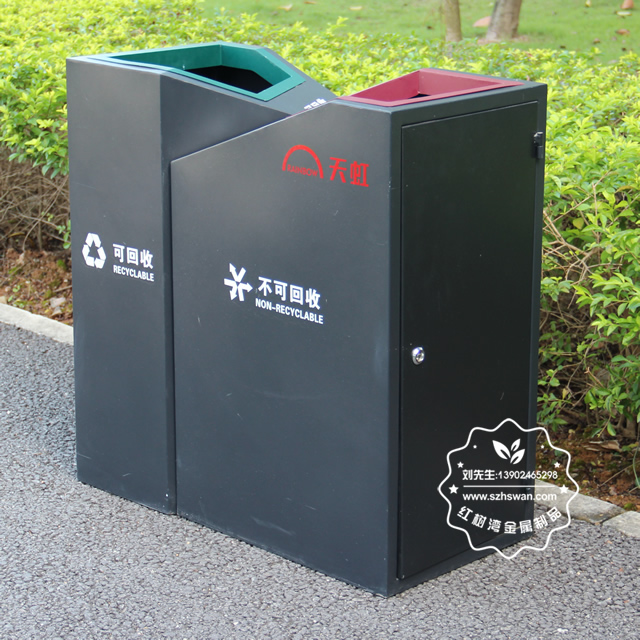 產品材質:商場直投口雙分類鋼制垃圾桶表面經過除油、噴砂防銹處理后,再進行酸洗磷化處理;表面清理后整體進行靜電噴涂或烤漆處理,靜電噴涂是經過流水線高溫固化爐固化后再出爐冷卻,漆面色澤耐久,防腐防銹;