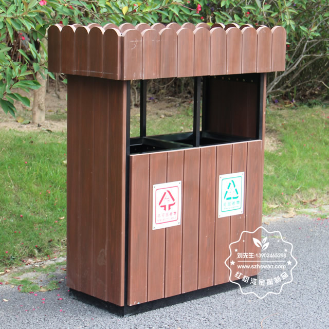 產品型號:G138環保塑木花箱鋼木分類垃圾桶