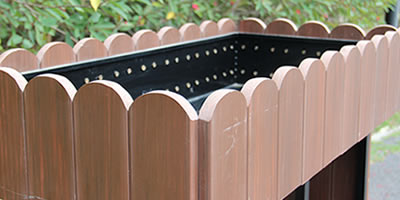 產品材質:環保塑木花箱鋼木分類垃圾桶木部分可選用優質進口山樟木、防腐木或塑木,經防腐烘干處理后加工成型。桶身框架采用冷軋鋼板加工,表面經酸洗磷化噴塑處理組裝而成,使其戶外耐候持久,防腐防蛀不變形等優點;