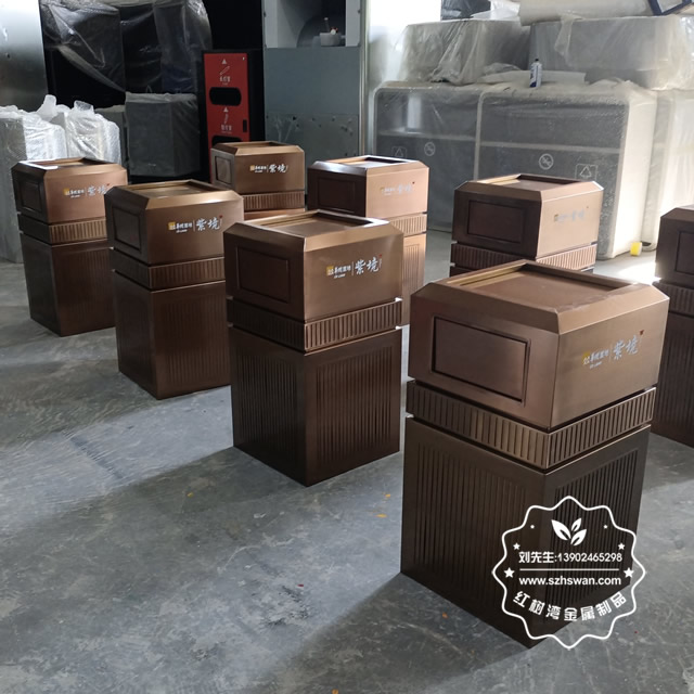 優質的紅古銅不銹鋼垃圾桶非常像藝術品。隨著當前不銹鋼垃圾桶加工能力的提高,金屬垃圾桶的形狀也在增加。紅古銅色的不銹鋼垃圾桶更是具有中國特色風格,中式紅古銅色垃圾桶大部分都是由不銹鋼管拼接而成。