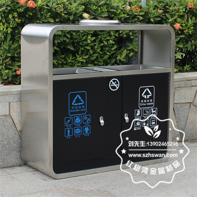 適用于廣州市政街道、廣場、工業(yè)區(qū)道路、公園景區(qū)等戶外公共場所。不銹鋼本色戶外連體兩分類方形垃圾桶設(shè)計,注重產(chǎn)品細節(jié)部位處理,堅固耐用,安全無利口,不傷手。