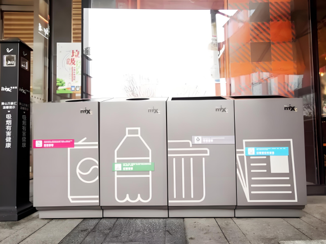 某一線城市綜合體定制了一組“藝術(shù)裝置型”四分類垃圾桶,采用不銹鋼與玻璃拼接設(shè)計,頂部嵌入綠植裝飾,側(cè)面設(shè)置電子導覽屏。該設(shè)計不僅與商場輕奢風格融合,還通過積分兌換優(yōu)惠券功能,使垃圾投放量提升40%,顧客停留時長增加15%。