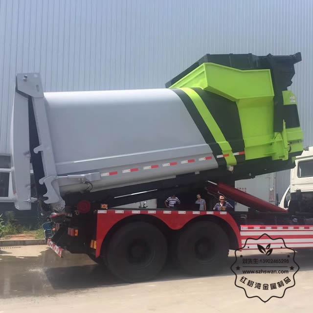 連體壓縮垃圾箱是用于廢物搜集、轉運(經過車廂可卸式廢物車)的環衛設備。配備有緊縮機頭、車箱、液壓傳動體系和電氣控制體系。廢物經過翻轉組織從填料口倒入, 經緊縮推頭壓入車廂內,壓入時經過特別結構破碎廢物。緊縮推頭經過兩支油缸驅動,體系壓力可調到較大值,因而裝載容量比一般環衛設備大。裝卸廢物時既不污染環境,又減輕了清潔工人的勞動強度。本說明書只介紹連體壓縮垃圾箱的首要技術參數、原理、操作方法、保養和毛病掃除。  購置春風牌連體壓縮垃圾箱取得最佳效益,是咱們和您共同尋求的方針,但很大程度取決于您對連體壓縮垃圾箱操作的熟練程度和保養的細心、深淺程度。咱們誠實地期望您在運用連體壓縮垃圾箱之前,可以通讀本手冊,并對其間介紹的操作程序做到稱心如意。本手冊是連體壓縮垃圾箱的一部分,應與連體壓縮垃圾箱一同保存和運用。我公司對產品會作不斷的改善,改善的狀況恕不逐個告訴您。因而,有可能呈現本手冊的介紹與實際結構不同的狀況,敬請體諒。在連體壓縮垃圾箱的運用、保養和調整過程中,請您依據連體壓縮垃圾箱的實際配備狀況,依照運用說明書相應內容進行。