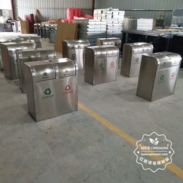 雙桶兩分類不銹鋼果皮箱有室內和戶外,今天深圳市紅樹灣金屬制品有限公司的小編介紹介紹雙桶不銹鋼果皮箱,說起不銹鋼大家都不陌生,因為我們家里面的鍋碗調盆、桌子椅子、門窗很多都是采用不銹鋼材質制造的,不銹鋼是一種耐腐蝕、防火、等優點的金屬材質,304型號的不銹鋼更是食品級的材質很多西餐廳的叉子、菜刀能接觸食物材質很多都是304不銹鋼制作的,我們生活中的不銹鋼果皮箱就很多是201不銹鋼材質的,其實生活垃圾容器使用201就已經很奢侈了,而且很多材質都是塑料、鋼制、玻璃鋼等等材質的容器,不銹鋼材質在這幾種材質里面算是比較好的,也有部分的廢物容器是304不銹鋼的,201不銹鋼垃圾桶和304不銹鋼垃圾桶我們用肉眼是分別不出的,需要專業人生和工具才能夠辨認出來,下面小編就發一下我們廠家生產過的不銹鋼雙桶果皮箱。