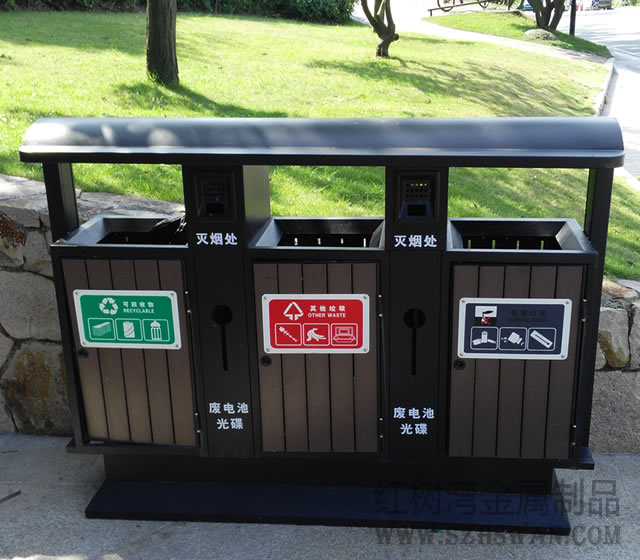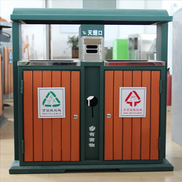 你知道一般公園常用的的垃圾桶是什么類型的嗎?很多公園基本上都是使用的鋼木垃圾桶,為什么要使用鋼木垃圾桶呢?因為公園景區一般種植的花草樹木比較多鋼木垃圾桶可以良好融入公園環境當中去,公園也是提供休閑娛樂散心之類的戶外活動場所,也是一個人流量比較密集的地方,鋼木垃圾桶在公園景區里就起到了收集垃圾廢物的任務,你們知道鋼木垃圾桶一般是什么材質的嗎?鋼木垃圾桶主要有兩種材質組合,一種就是鋼另外一種就是木,但是鋼是很多類型的,廠家一般會常用冷軋鋼板為垃圾桶的框架,其次也可以使用不銹鋼或者其他的鋼制品,木條我們可以選擇防腐木塑木、實木等一般塑木可以防腐蝕不會被蟲子挖洞,使用長了實木會發霉、腐爛、變形等,公園鋼木垃圾桶是一種常用環保垃圾箱,下面小編就把一些我們做個的鋼木果皮箱放在內容里更大家欣賞。
