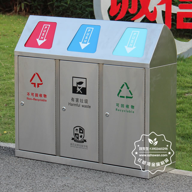 一、可以理解,不銹鋼垃圾桶是人們最常用的一種公用垃圾桶,按使用場合可分為公共不銹鋼垃圾桶和家庭垃圾桶。就盛放垃圾形式可分為獨立垃圾桶和分類垃圾桶。就加工材料可分為塑料垃圾桶、不銹鋼垃圾桶、陶瓷垃圾桶、木質垃圾桶、水泥垃圾桶和紙漿垃圾桶等等。就開啟方式有敞口式、揭蓋式、踩踏開蓋、紅外線感應式等等。