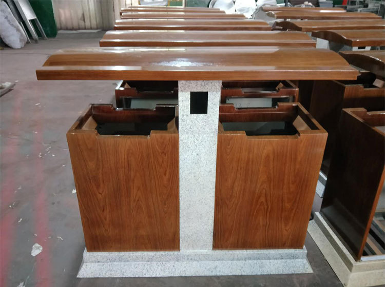 基本外觀外形制作完成,仿木加仿石相結(jié)合的不銹鋼垃圾桶,最后一道制作工序便是對外觀防紫外線處理及表面內(nèi)容的制作。