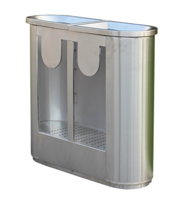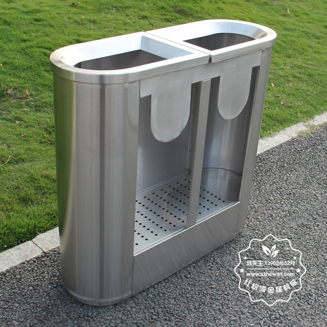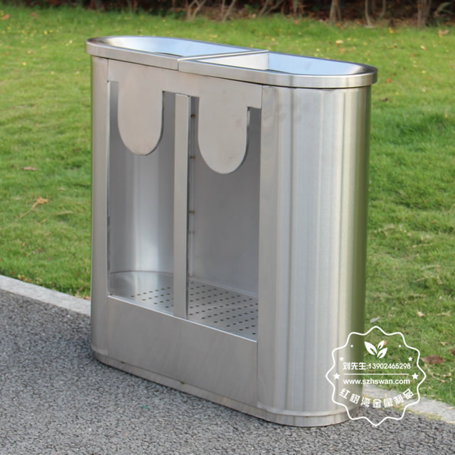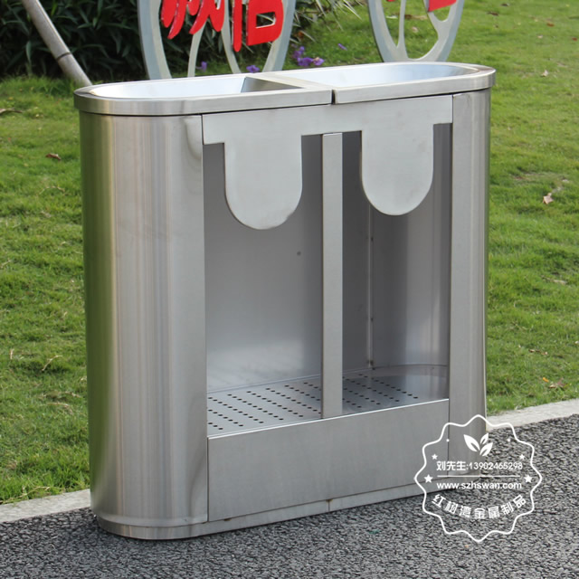 產品材質:室內雙分類不銹鋼果皮箱采用201#,202#,304#優質不銹鋼材料模壓成型,堅固耐用;內外表面光潔,減少垃圾殘留,易于清潔;配置鍍鋅板內桶,便于垃圾清倒;