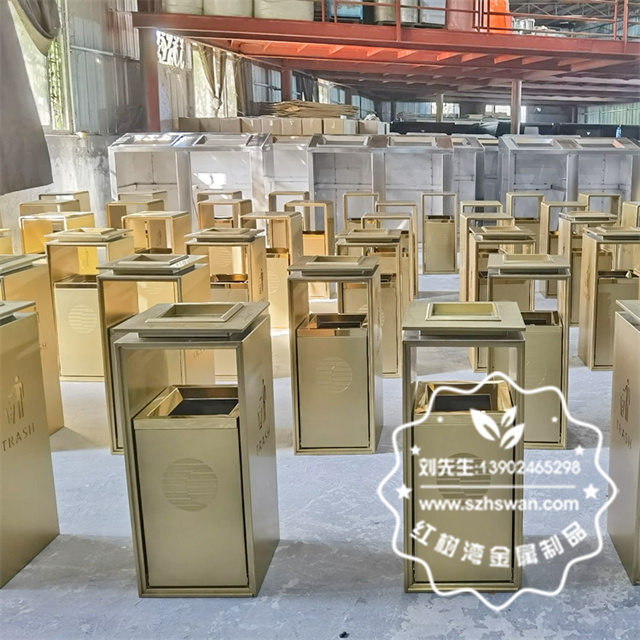 產品材質:室內方形電梯口電鍍不銹鋼垃圾桶采用201#,202#,304#優質不銹鋼材料模壓成型,堅固耐用;內外表面光潔,減少垃圾殘留,易于清潔;配置鍍鋅板內桶,便于垃圾清倒;