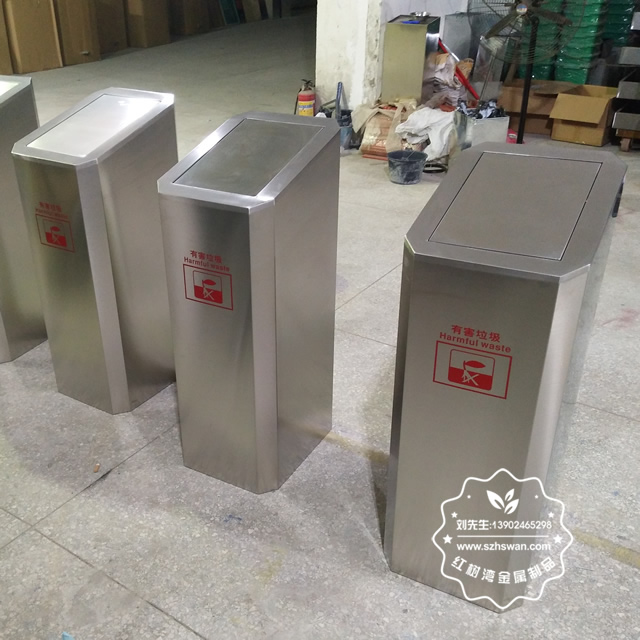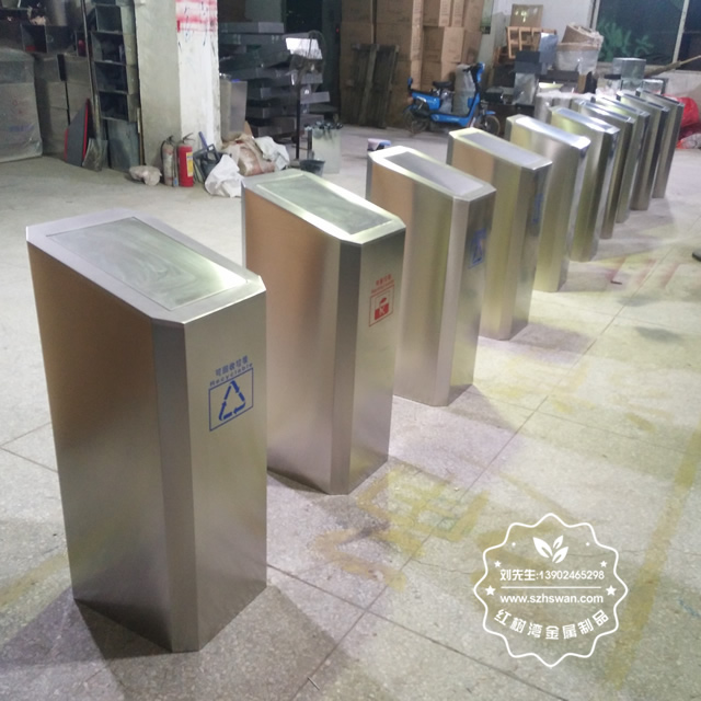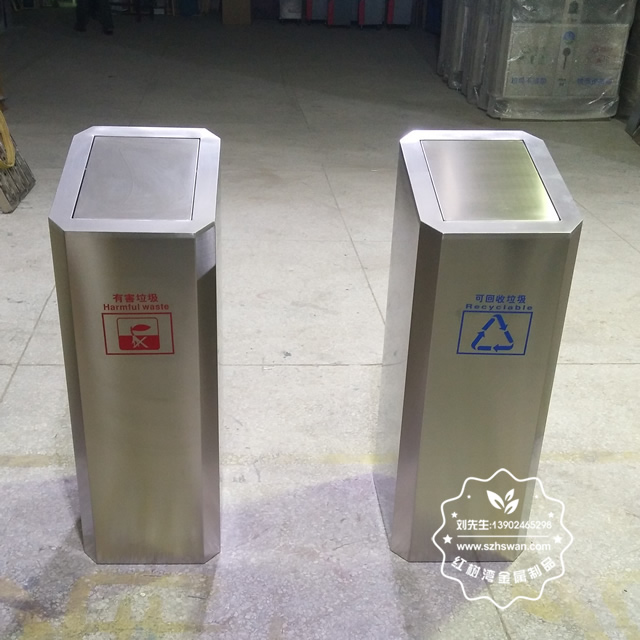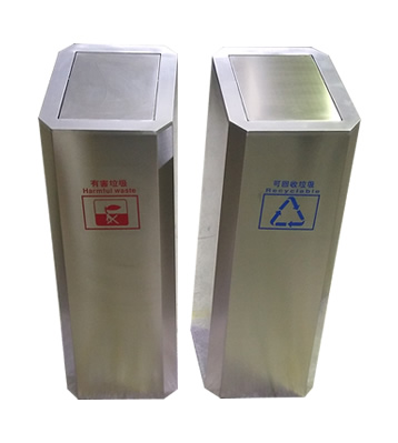 產品材質:室內組合式不銹鋼分類果皮箱采用201#,202#,304#優質不銹鋼材料模壓成型,堅固耐用;內外表面光潔,減少垃圾殘留,易于清潔;配置鍍鋅板內桶,便于垃圾清倒;