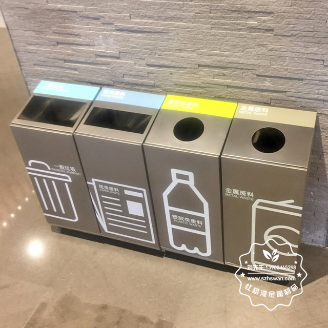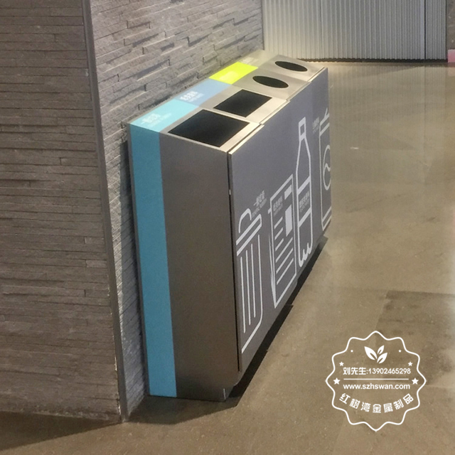 產品材質:抽拉式商場不銹鋼分類垃圾桶采用201#,202#,304#優質不銹鋼材料模壓成型,堅固耐用;內外表面光潔,減少垃圾殘留,易于清潔;配置鍍鋅板內桶,便于垃圾清倒;