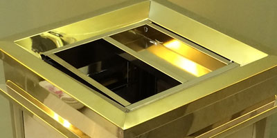 產品材質:黑金腰形落地煙灰桶采用優質不銹鋼材料經專業除銹處理,表面采用專用戶外高溫烤漆,保證色彩鮮艷持久,有效防止生銹。外飾大理石表面呈金黃色,光滑亮麗彰顯高貴本色;